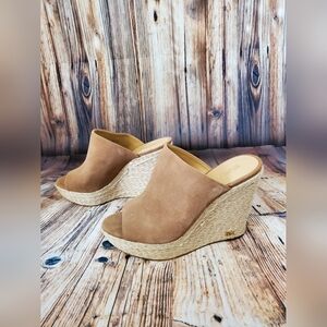 Round-toe silhouette with peep-toe. Wrapped wedge for style and added comfort.