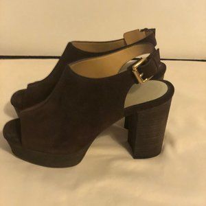 Super Comfortable Brown Suede Back Strap open toed stacked heel. Worn Once!!!