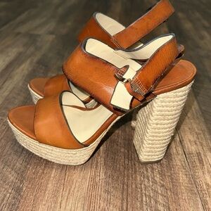 Michael Kors Summer Brown Leather Jute Sandals Size 38