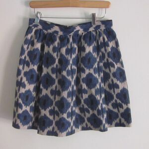 Michael Kors Summer Linen A-Line Mini Skirt Size 4 Rear Zipper Blue Ikat Print