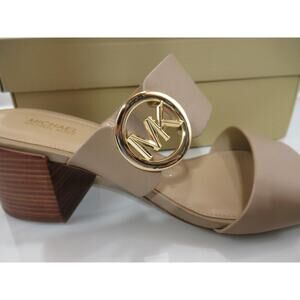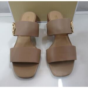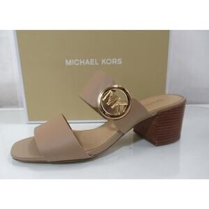 Michael Kors Summer Mid Heeled Sandals Mule MK Logo Leather Camel Nude Size 7.5