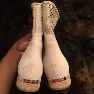 These boots are amazing! They are composed of a very rich Suede that is sure to stand out! They feature a silver plate of the Kors signature logo along the heel of the boot and they are a very soft tan/khaki color! ‼️ These boots have faint dust from storage as pictured in photo #1. This won't present an issue while wearing and it is barely detectable in person but I strive for 100% honestly! These boots are much nicer in person. (Make an offer)