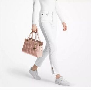 Michael Kors Susan Pink Medium Quilted Leather Satchel Handbag