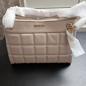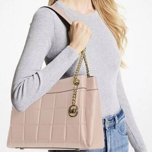 Michael Kors Susan Pink Medium Quilted Leather Satchel Handbag