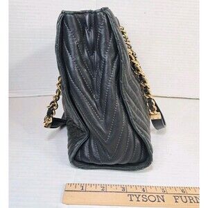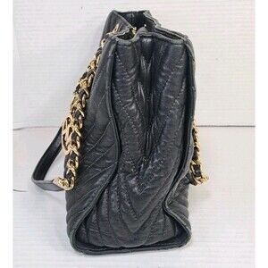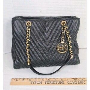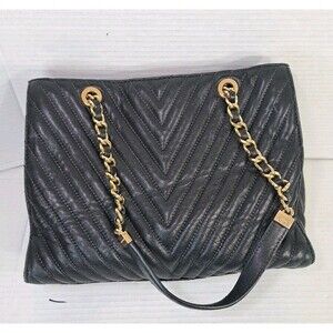 Michael Kors Susannah Large Chevron-Quilted Leather Tote Black Gold Shoulder Bag