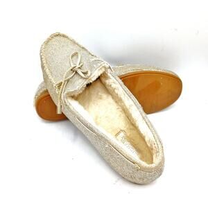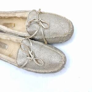 Michael Kors Sutton Shearling Moccasin Slippers – Champagne Mesh - Chalet Chic