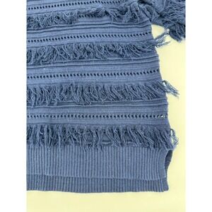 Michael Kors Sweater Blue Fringe Knit Pullover Top Extra Large Womens