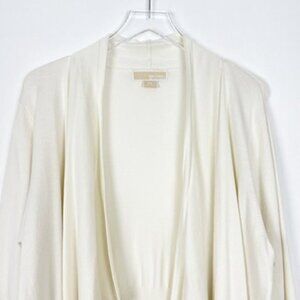 Michael Kors Sweater Womens 2X Ivory Open-Front Asymmetrical Waterfall Cardigan
