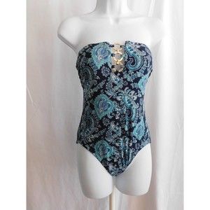 Michael Kors Swimsuit Women's One Piece Blue Strapless Swim Suit Size 6