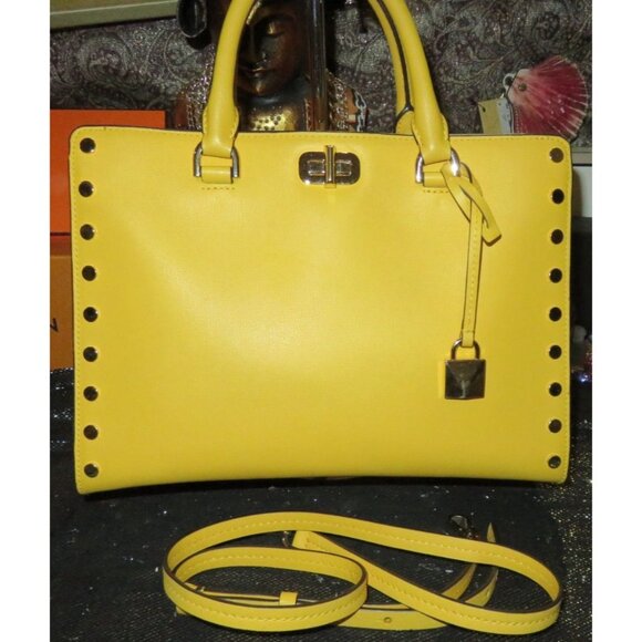 Michael Kors Sylvie Sunflower Yellow Structured leather Studded Tote Satchel