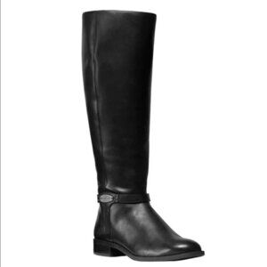 Michael Kors Sz 5.5 M Solid Black Finley Tall Riding Boot Knee Low Heel Leather