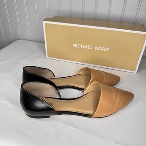 Michael Kors Sz 8M Julieta Flats Black Sun Tan Leather d'Orsay Pointed Shoe