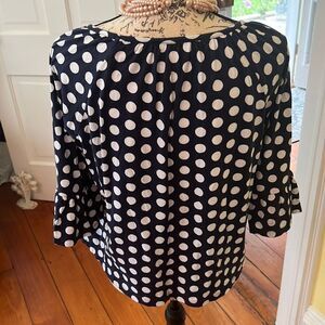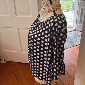 *Michael Kors* Sz S Classic Navy Blue & White Polka Dot Top