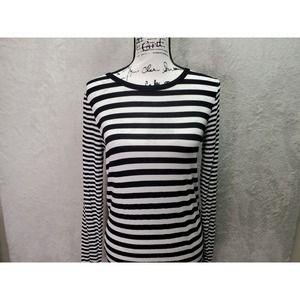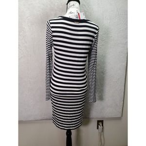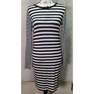 Michael Kors T Shirt Dress Women XS Black Striped Viscose Long Sleeve Round Neck