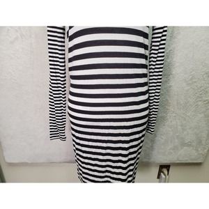 Michael Kors T Shirt Dress Women XS Black Striped Viscose Long Sleeve Round Neck.