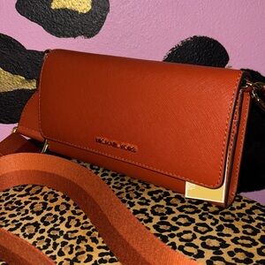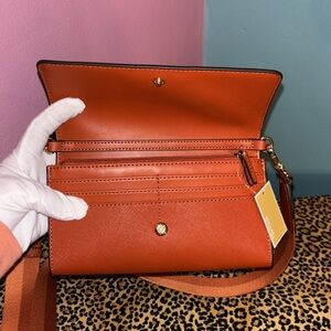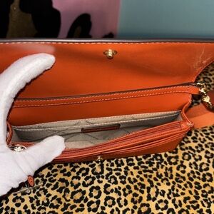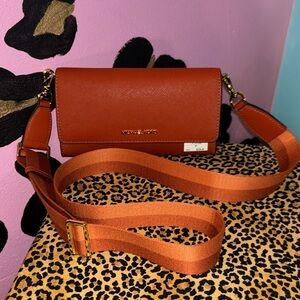 Stylish tan/orange crossbody bag. Features adjustable & removable strap. Perfect for any occasion.