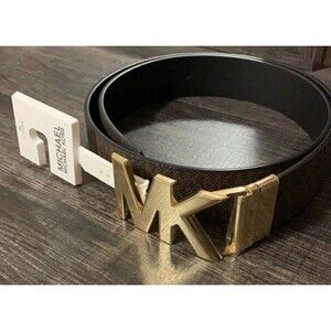 Michael Kors TWIST Reversible Belt GOLD METAL MK LOGO BUCKLE BROWN BLACK MEDIUM