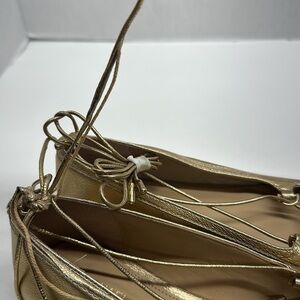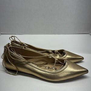 Michael Kors Tabby Ballet Flats Shoes Leather Pointed Toe Ankle Strap Gold 7.5