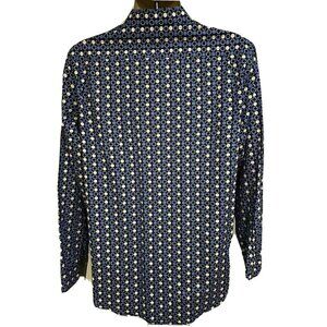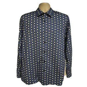 Michael Kors Tailored Fit Blue Button Front Shirt Large Contrast Collar Cuffs
