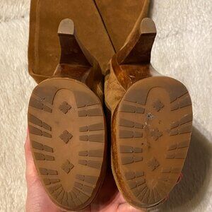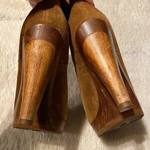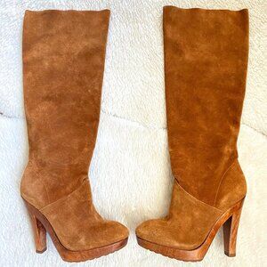 Michael Kors Tall Suede Platform Wooden Heel Boots – Size 5.5M