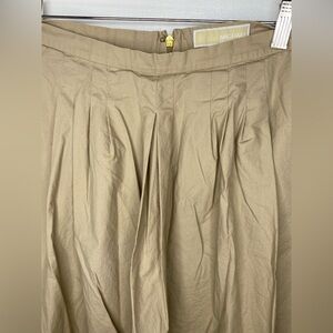 This knee-length skirt by Michael Kors features a chic A-line silhouette with elegant pleats, perfect for casual or work settings. The tan and cream color palette adds versatility, making it a stylish addition to any wardrobe.