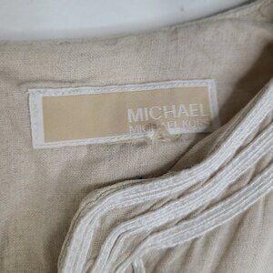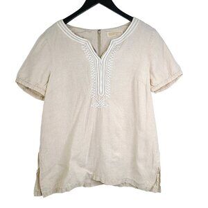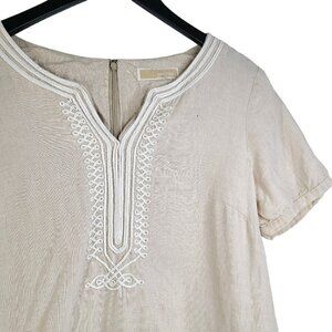 Michael Kors Tan Beige Embroidered 100% Linen V Neck Tunic Top