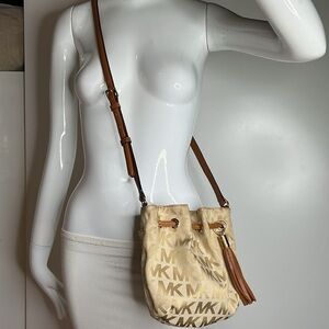 Michael Kors Tan Canvas Logo Crossbody Bag