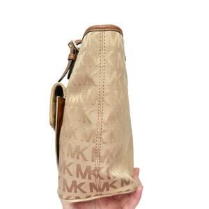 Michael Kors Tan Canvas Monogram Signature Shoulder Bag Tote Purse