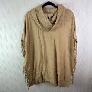Michael Kors Tan Cowl Neck Fringe Sweater Size XL