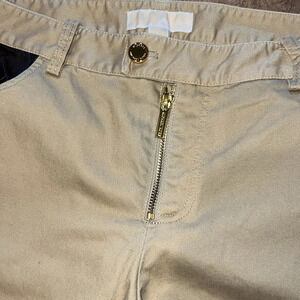 Michael Kors Tan Faux Leather Pockets Gold Hardware Mid Rise Bootcut Pants 8