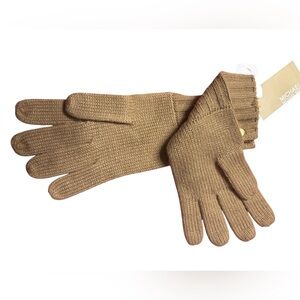 Michael Kors Tan Knit Gloves with Gold Buttons