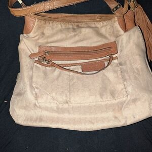 Michael Kors large hobo shoulder bag in soft pebbled leather. Beautiful cognac brown color with a chic tassel detail. Spacious interior with multiple pockets—perfect for everyday use. Pre-loved with gentle wear, overall in great condition. Classic, versatile style that goes with everything!