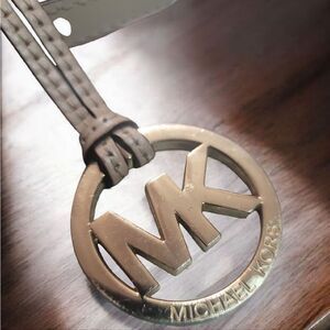 Stylish tan leather replacement strapsfeaturing a gold Michael Kors logo.