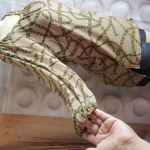Michael Kors Tan Long Sleeve Top With Yellow Chains Size M