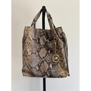 Michael Kors Tan Python Embossed Leather Shoulder Bag Purse #59313
