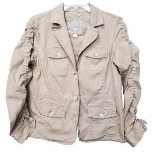 Michael Kors Tan Ruched Sleeve Button-Up Utility Jacket Size 10