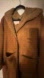 Chic and cozy shearling coat. Features a warm tan color. Ideal for cold weather.