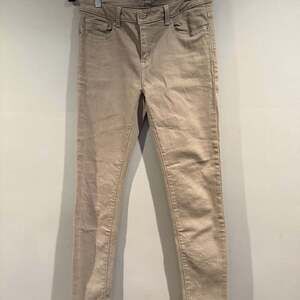 Michael Kors Tan Slim-Fit Stretch-Cotton Jeans, size 6, made in Colombia. These jeans are in excellent pre-owned condition with no stains or holes. They offer a comfortable slim fit, ideal for a refined casual look.