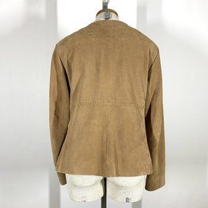 Michael Kors Tan Suede Leather Jacket Women’s Sz L Fringe.
