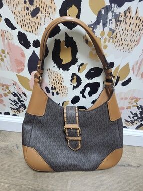 Michael Kors Tan and Beige Leather Shoulder Bag Size Large