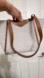 Michael Kors tote with MK logo pattern like new condition. The bag color is cream with brown leather trim. Was only used for a short time. The only flaw is the pen mark on the opening leather but it’s clean inside and out. Comes with care cards.