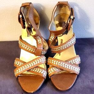 Michael Kors Tan and Gold Strappy Heeled Sandal Size 6 1/2