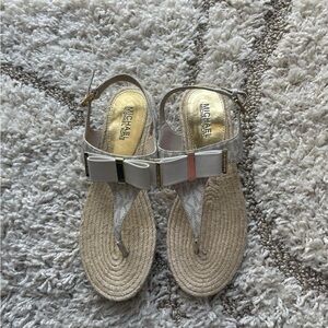 Elegant Michael Kors sandals with a stylish bow. Features tan and silver accents in perfect conditions