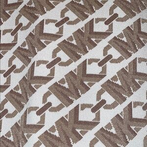 This chic mini dress by Michael Kors showcases a sleeveless, halter neckline design in a sophisticated tan and white palette. Its bodycon silhouette is perfect for cocktail events, offering a sleek and modern look. The structured fabric ensures a flattering fit, making it an ideal choice for a stylish wedding guest.