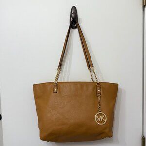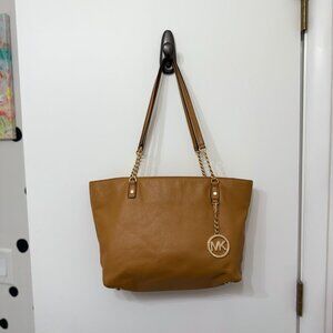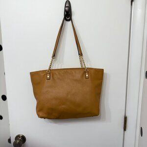 Michael Kors Tan/Caramel Leather with Gold Chains and Charm Hand Bag