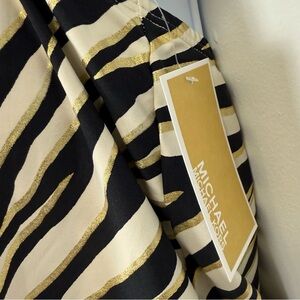 Michael Kors Tankini Swim Top Womens Large Black Gold Zebra Halter NWT MM9P302