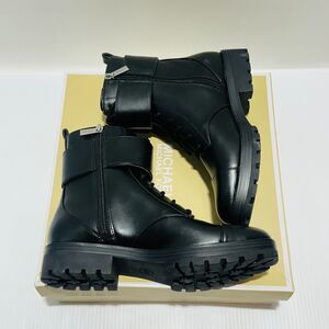 Michael Kors Tatum US 9.5M Combat Boots Black Faux Leather Ankle Zip NIB $225