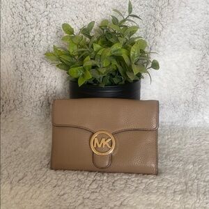 Michael Kors Taupe Leather Wallet with Gold Logo