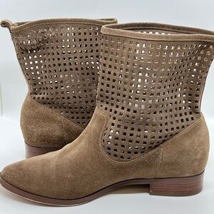 See pictures for visible wear. Most notably: the tearing in the perforation on the left boot, scuffing on the outer soles and normal wear of the material overall.