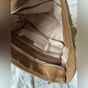 Michael Kors Taupe Gold Chair Soft Shoulder Leather Bag